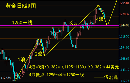 伍宏鑫:4浪回落看1250,5.2现货黄金走势分析及多单解套2017-05-02 02:58:56 -